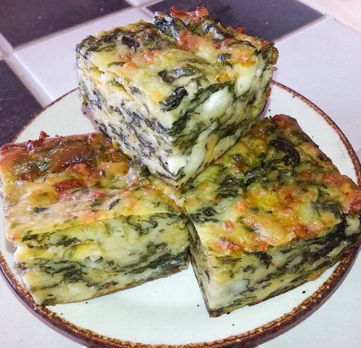 GREEK SPINACH AND CHEESE QUICHE SQUARES Ingredients three large eggs, beaten well one cup all purpose flour one tsp baking …