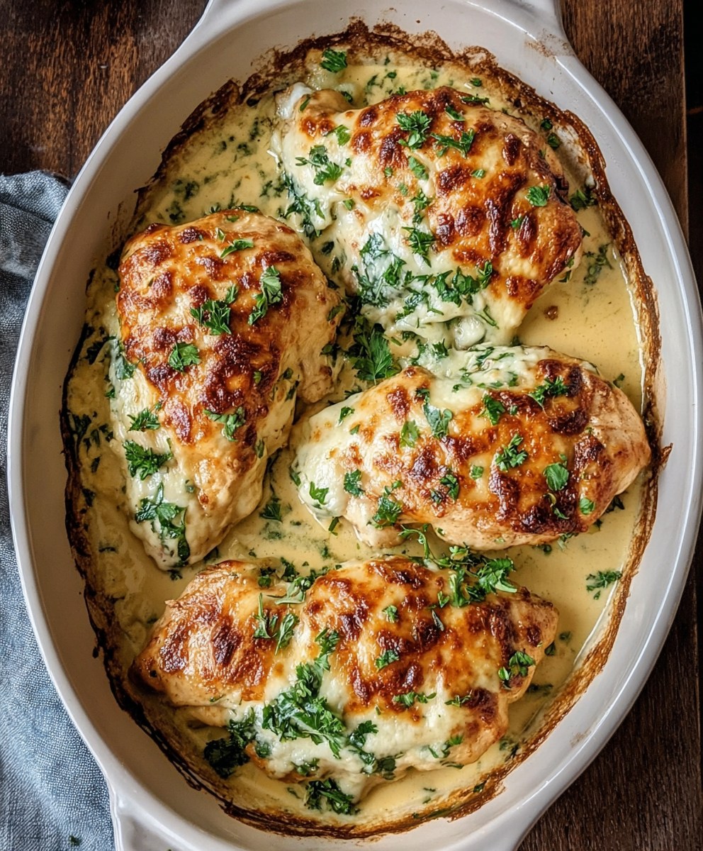 Description This Baked Caesar Chicken is a quick, crowd-pleasing dinner featuring juicy chicken breasts topped with creamy Caesar dressing, melted …